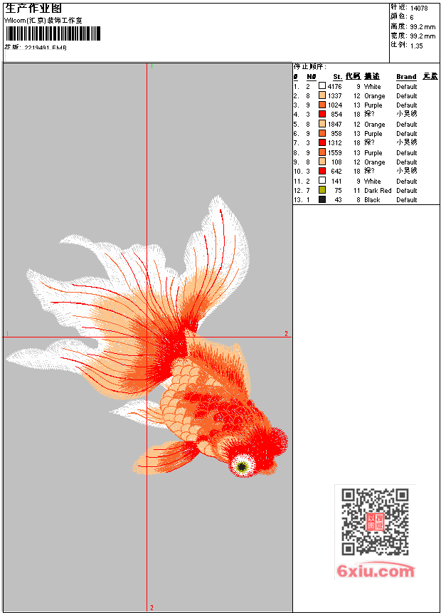 - EMB花版参数: 大小:130.00 KB / 尺寸:99*99[毫米] / 针数:14078针 / 线色:6 / 格式:EMB / 版本:e4.2