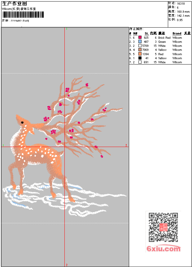 - EMB花版参数: 大小:137.50 KB / 尺寸:142*161[毫米] / 针数:16318针 / 线色:6 / 格式:EMB / 版本:e4.2