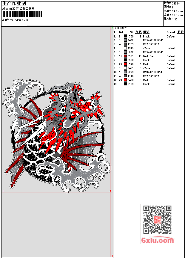 - EMB花版参数: 大小:251.50 KB / 尺寸:91*95[毫米] / 针数:39064针 / 线色:6 / 格式:EMB / 版本:e4.2