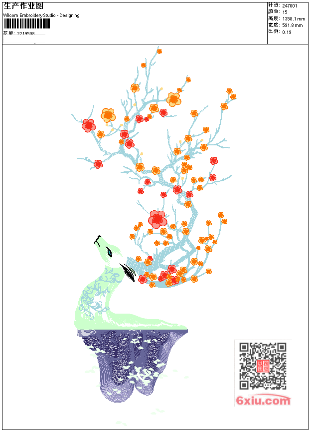 - EMB花版参数: 大小:984.00 KB / 尺寸:592*1358[毫米] / 针数:247133针 / 线色:15 / 格式:EMB / 版本:e4.2