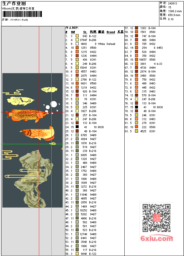 - EMB花版参数: 大小:2.05 MB / 尺寸:660*1308[毫米] / 针数:243813针 / 线色:15 / 格式:EMB / 版本:e4.2