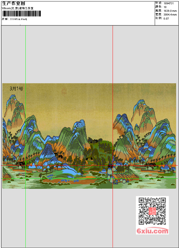 - EMB花版参数: 大小:7.77 MB / 尺寸:3004*1639[毫米] / 针数:1894731针 / 线色:18 / 格式:EMB / 版本:e4.2