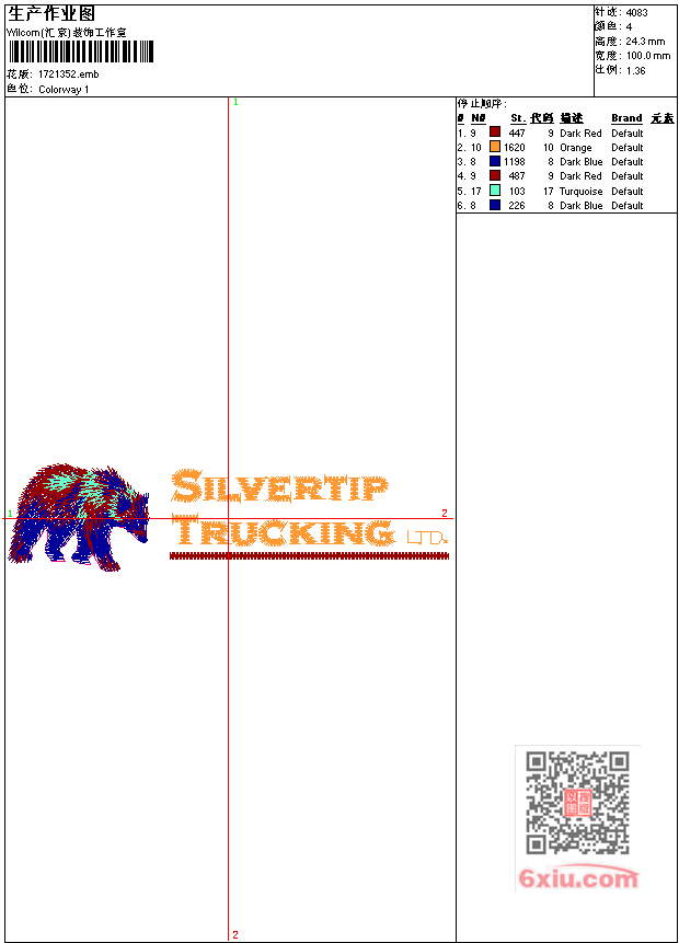 熊动物 点此上传花版兑乐绣币/现金 emb花版参数: 大小:37.00 KB / 尺寸:100*24[毫米] / 针数:4083针 / 线色:4 / 格式:emb / 版本:6 版带文件需绣花软件方可打开,可配色打印导出各种格式或直接上机绣。如无绣花软件可下载1:1模拟效果图。 PNG图片信息:大小:0.0 (MB) /图宽*高:379x92(像素) 上传作者( wy19*** ) 获得乐绣币:10个 emb下载 1:1图下载 关闭 相似花型推荐: 剑章仔 狮子动物 狗动物 人物 牛动物 球保龄球 熊章仔 狼章仔 鼠卡通 章仔标 方块标 枪 汽车校车 人物章仔 骷髅 上一个花样:狮标章 下一个花样:剑章仔