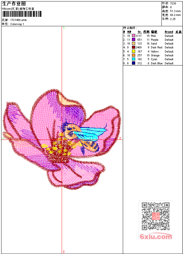 花朵蜜蜂 点此上传花版兑乐绣币/现金 emb花版参数: 大小:52.00 KB / 尺寸:60*51[毫米] / 针数:7230针 / 线色:8 / 格式:emb / 版本:6 版带文件需绣花软件方可打开,可配色打印导出各种格式或直接上机绣。如无绣花软件可下载1:1模拟效果图。 PNG图片信息:大小:0.1 (MB) /图宽*高:228x195(像素) 上传作者( wy19*** ) 获得乐绣币:10个 emb下载 1:1图下载 关闭 相似花型推荐: 汽车 狗章仔标 鹰章仔 鱼牡丹花吉祥唐装 凤凰神鸟工艺精品 山水挂画工艺精品 风景-山清水秀乱针绣工艺精品 风景-秋山水画乱针绣工艺精品 人物蒙娜丽莎-精品工艺 马-精品工艺 狗动物 虎动物 蝴蝶大花版工艺精品 孔雀工艺精品 向日葵工艺精品 上一个花样:马卡通 下一个花样:汽车