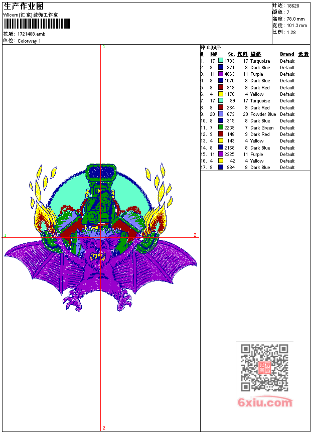 章仔蝙蝠 点此上传花版兑乐绣币/现金 emb花版参数: 大小:111.50 KB / 尺寸:101*78[毫米] / 针数:18628针 / 线色:7 / 格式:emb / 版本:6 版带文件需绣花软件方可打开,可配色打印导出各种格式或直接上机绣。如无绣花软件可下载1:1模拟效果图。 PNG图片信息:大小:0.2 (MB) /图宽*高:384x295(像素) 上传作者( wy19*** ) 获得乐绣币:10个 emb下载 1:1图下载 关闭 相似花型推荐: 鱼-鲨鱼 鸟章仔 人物武士 船 马卡通 花朵蜜蜂 汽车 狗章仔标 鹰章仔 鱼牡丹花吉祥唐装 凤凰神鸟工艺精品 山水挂画工艺精品 风景-山清水秀乱针绣工艺精品 风景-秋山水画乱针绣工艺精品 人物蒙娜丽莎-精品工艺 上一个花样:鹰 下一个花样:鱼-鲨鱼