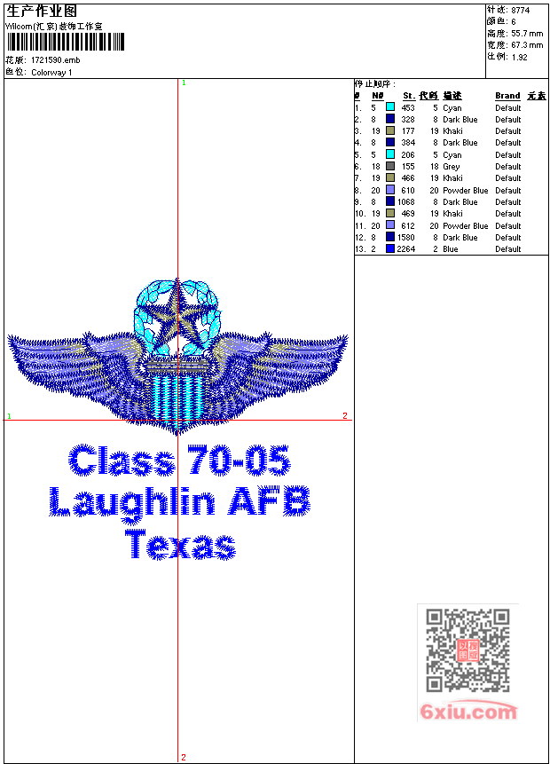 翅膀章仔 点此上传花版兑乐绣币/现金 emb花版参数: 大小:70.00 KB / 尺寸:67*56[毫米] / 针数:8774针 / 线色:6 / 格式:emb / 版本:6 版带文件需绣花软件方可打开,可配色打印导出各种格式或直接上机绣。如无绣花软件可下载1:1模拟效果图。 PNG图片信息:大小:0.1 (MB) /图宽*高:255x211(像素) 上传作者( wy19*** ) 获得乐绣币:10个 emb下载 1:1图下载 关闭 相似花型推荐: 汽车吊车 章仔标 狼标 章仔标 章仔标 林间小屋-精品工艺 牡丹花鸟富贵吉祥长寿工艺精品 福工艺精品 凤凰工艺精品 人物海盗 鹰 章仔蝙蝠 鱼-鲨鱼 鸟章仔 人物武士 上一个花样:豹头 下一个花样:汽车吊车