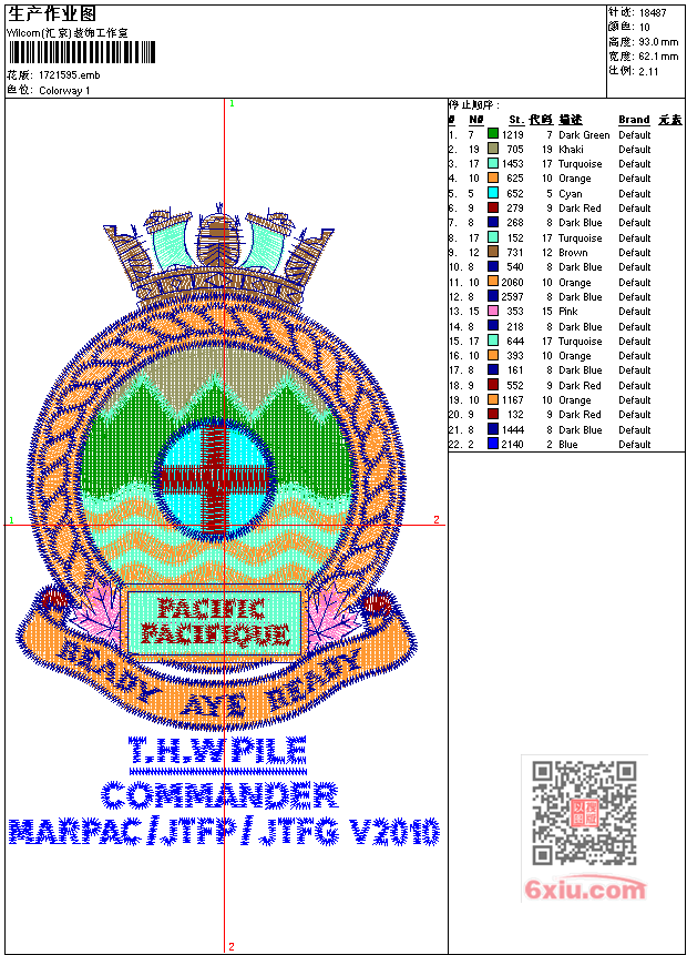 章仔标 点此上传花版兑乐绣币/现金 emb花版参数: 大小:124.00 KB / 尺寸:62*93[毫米] / 针数:18487针 / 线色:10 / 格式:emb / 版本:6 版带文件需绣花软件方可打开,可配色打印导出各种格式或直接上机绣。如无绣花软件可下载1:1模拟效果图。 PNG图片信息:大小:0.1 (MB) /图宽*高:235x352(像素) 上传作者( wy19*** ) 获得乐绣币:10个 emb下载 1:1图下载 关闭 相似花型推荐: 鹰标 章仔标 鱼鲨鱼章标 豹头 翅膀章仔 汽车吊车 章仔标 狼标 章仔标 章仔标 林间小屋-精品工艺 牡丹花鸟富贵吉祥长寿工艺精品 福工艺精品 凤凰工艺精品 人物海盗 上一个花样:章仔标 下一个花样:鹰标
