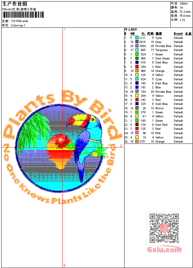 鸟-鹦鹉章 点此上传花版兑乐绣币/现金 emb花版参数: 大小:109.00 KB / 尺寸:76*72[毫米] / 针数:15666针 / 线色:14 / 格式:emb / 版本:6 版带文件需绣花软件方可打开,可配色打印导出各种格式或直接上机绣。如无绣花软件可下载1:1模拟效果图。 PNG图片信息:大小:0.1 (MB) /图宽*高:286x274(像素) 上传作者( wy19*** ) 获得乐绣币:10个 emb下载 1:1图下载 关闭 相似花型推荐: 章仔标 章仔标 章仔标 鹰标 章仔标 鱼鲨鱼章标 豹头 翅膀章仔 汽车吊车 章仔标 狼标 章仔标 章仔标 林间小屋-精品工艺 牡丹花鸟富贵吉祥长寿工艺精品 上一个花样:鬼脸 下一个花样:章仔标