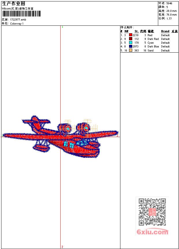 飞机 点此上传花版兑乐绣币/现金 emb花版参数: 大小:55.50 KB / 尺寸:77*28[毫米] / 针数:5848针 / 线色:5 / 格式:emb / 版本:6 版带文件需绣花软件方可打开,可配色打印导出各种格式或直接上机绣。如无绣花软件可下载1:1模拟效果图。 PNG图片信息:大小:0.0 (MB) /图宽*高:291x106(像素) 上传作者( wy19*** ) 获得乐绣币:10个 emb下载 1:1图下载 关闭 相似花型推荐: 狮头 人物武士 壁虎动物 卡通牛 跳跳虎 虎-下山老虎工艺品 鹤工艺精品 荷花与青蛙工艺精品 荷花工艺精品 好山好水工艺精品 含包待放-花型-工艺精品 国色牡丹工艺精品 绿叶牡丹 中国风牡丹花 双头鹰 上一个花样:章标怪兽 下一个花样:狮头