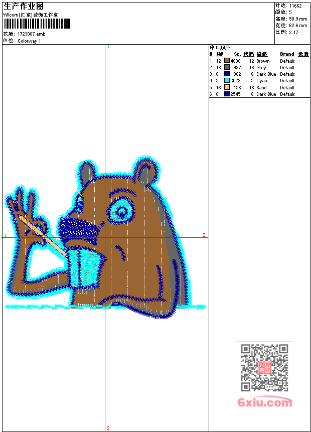 鼹鼠动物 点此上传花版兑乐绣币/现金 emb花版参数: 大小:57.00 KB / 尺寸:63*51[毫米] / 针数:11662针 / 线色:5 / 格式:emb / 版本:6 版带文件需绣花软件方可打开,可配色打印导出各种格式或直接上机绣。如无绣花软件可下载1:1模拟效果图。 PNG图片信息:大小:0.1 (MB) /图宽*高:237x193(像素) 上传作者( wy19*** ) 获得乐绣币:10个 emb下载 1:1图下载 关闭 相似花型推荐: 豹头 企鹅章 狗卡通 鹿动物 狗top dog 鹰标 汽车 鲨鱼 僵尸标 特殊字体 人物武士 豹头 壁虎动物 豹头 人物印第安人 上一个花样:喷火龙 下一个花样:豹头