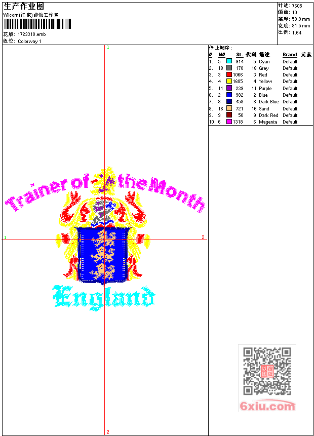 狮标england 点此上传花版兑乐绣币/现金 emb花版参数: 大小:71.00 KB / 尺寸:82*59[毫米] / 针数:7607针 / 线色:10 / 格式:emb / 版本:6 版带文件需绣花软件方可打开,可配色打印导出各种格式或直接上机绣。如无绣花软件可下载1:1模拟效果图。 PNG图片信息:大小:0.1 (MB) /图宽*高:309x223(像素) 上传作者( wy19*** ) 获得乐绣币:10个 emb下载 1:1图下载 关闭 相似花型推荐: 蝙蝠侠 盾牌 人物华盛顿 人物跳舞 盾牌剑 球标balze火焰 武士标 公鸡打斧头 鸟标 老爷车 军队标 武士盾牌 熊标 盾牌剑 印第安头饰 上一个花样:狮标england 下一个花样:蝙蝠侠