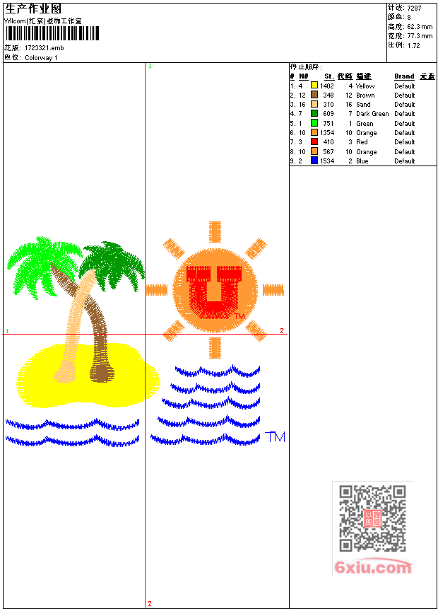 海椰树 点此上传花版兑乐绣币/现金 emb花版参数: 大小:44.00 KB / 尺寸:77*62[毫米] / 针数:7287针 / 线色:8 / 格式:emb / 版本:6 版带文件需绣花软件方可打开,可配色打印导出各种格式或直接上机绣。如无绣花软件可下载1:1模拟效果图。 PNG图片信息:大小:0.1 (MB) /图宽*高:293x236(像素) 上传作者( wy19*** ) 获得乐绣币:10个 emb下载 1:1图下载 关闭 相似花型推荐: 豹标 海龟 鸟 蜜蜂 小花 鸟标 马标 球标火焰 白宫 狮标england 狮标england 蝙蝠侠 盾牌 人物华盛顿 人物跳舞 上一个花样:鸟 下一个花样:豹标