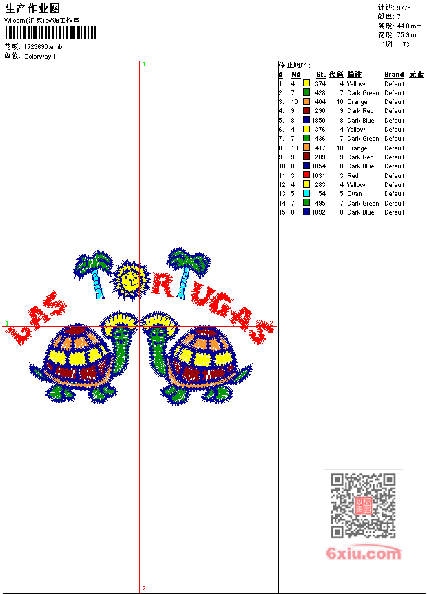 乌龟 点此上传花版兑乐绣币/现金 emb花版参数: 大小:83.00 KB / 尺寸:76*45[毫米] / 针数:9775针 / 线色:7 / 格式:emb / 版本:6 版带文件需绣花软件方可打开,可配色打印导出各种格式或直接上机绣。如无绣花软件可下载1:1模拟效果图。 PNG图片信息:大小:0.1 (MB) /图宽*高:288x170(像素) 上传作者( wy19*** ) 获得乐绣币:10个 emb下载 1:1图下载 关闭 相似花型推荐: 怪物 山羊盾牌 战士人物 鸟 弯月刀 棒球队标 赛车旗 金龙鱼 喷火龙 鹿 外星人 狗 狗 昆虫 武士头盔字母s 上一个花样:狗 下一个花样:怪物