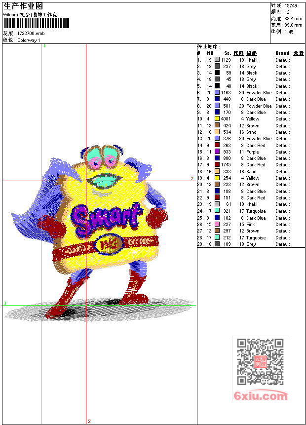面包超人 点此上传花版兑乐绣币/现金 emb花版参数: 大小:102.00 KB / 尺寸:90*83[毫米] / 针数:15749针 / 线色:12 / 格式:emb / 版本:6 版带文件需绣花软件方可打开,可配色打印导出各种格式或直接上机绣。如无绣花软件可下载1:1模拟效果图。 PNG图片信息:大小:0.1 (MB) /图宽*高:339x316(像素) 上传作者( wy19*** ) 获得乐绣币:10个 emb下载 1:1图下载 关闭 相似花型推荐: 骷髅 青蛙脚印 赛车 赛车 翅膀标 蛇 柴火 狗 乌龟 怪物 山羊盾牌 战士人物 鸟 弯月刀 棒球队标 上一个花样:王冠 下一个花样:骷髅