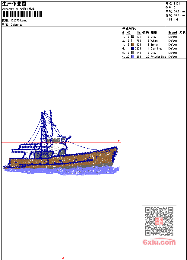 轮船 点此上传花版兑乐绣币/现金 emb花版参数: 大小:49.00 KB / 尺寸:91*51[毫米] / 针数:8808针 / 线色:5 / 格式:emb / 版本:6 版带文件需绣花软件方可打开,可配色打印导出各种格式或直接上机绣。如无绣花软件可下载1:1模拟效果图。 PNG图片信息:大小:0.1 (MB) /图宽*高:344x193(像素) 上传作者( wy19*** ) 获得乐绣币:10个 emb下载 1:1图下载 关闭 相似花型推荐: 狮标 鹰标 王冠 面包超人 骷髅 青蛙脚印 赛车 赛车 翅膀标 蛇 柴火 狗 乌龟 怪物 山羊盾牌 上一个花样:熊标 下一个花样:狮标