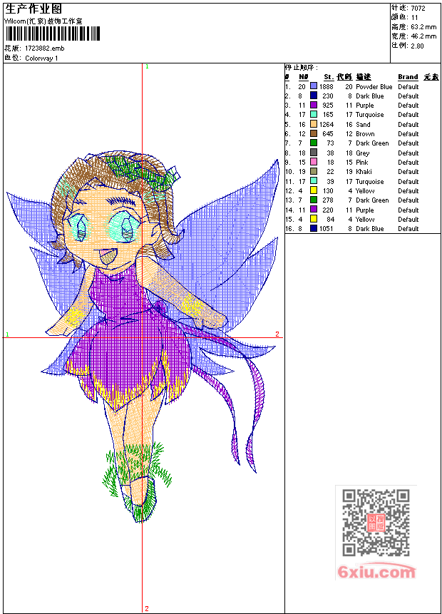 花仙女 点此上传花版兑乐绣币/现金 emb花版参数: 大小:58.00 KB / 尺寸:46*63[毫米] / 针数:7072针 / 线色:11 / 格式:emb / 版本:6 版带文件需绣花软件方可打开,可配色打印导出各种格式或直接上机绣。如无绣花软件可下载1:1模拟效果图。 PNG图片信息:大小:0.1 (MB) /图宽*高:175x239(像素) 上传作者( wy19*** ) 获得乐绣币:10个 emb下载 1:1图下载 关闭 相似花型推荐: 人物标 棒球标 鹰标 武士 向日葵 蛇 椰树月亮 校车 线条花 蜜蜂 鱼标 锦绣前程之富贵大顺工艺精品牡丹花鸟 金猪送福工艺精品毛巾绣 鸟金秋硕果满枝头工艺精品 金凤凰工艺精品 上一个花样:货车 下一个花样:人物标