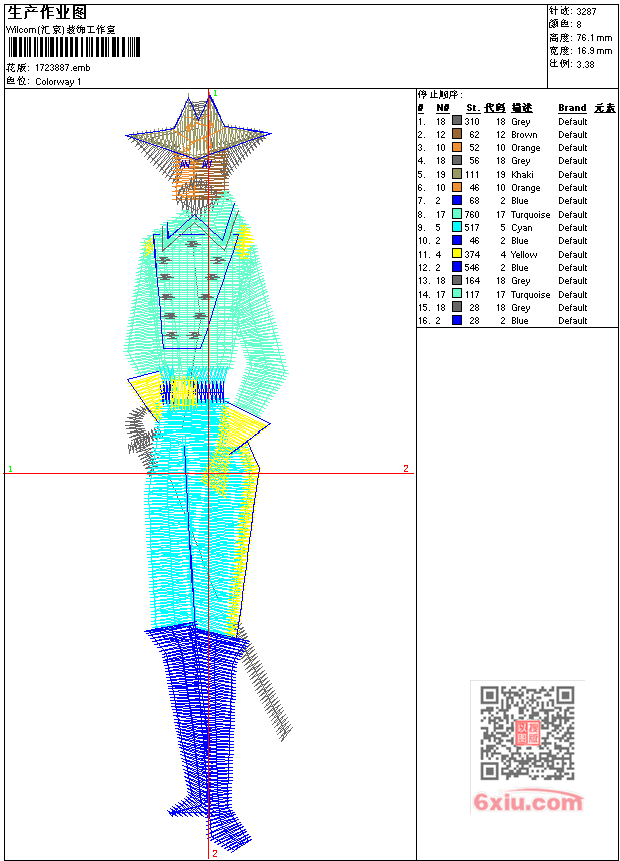 人物 点此上传花版兑乐绣币/现金 emb花版参数: 大小:37.50 KB / 尺寸:17*76[毫米] / 针数:3285针 / 线色:8 / 格式:emb / 版本:6 版带文件需绣花软件方可打开,可配色打印导出各种格式或直接上机绣。如无绣花软件可下载1:1模拟效果图。 PNG图片信息:大小:0.0 (MB) /图宽*高:64x288(像素) 上传作者( wy19*** ) 获得乐绣币:10个 emb下载 1:1图下载 关闭 相似花型推荐: 人物 猫卡通 心形章 货车 花仙女 人物标 棒球标 鹰标 武士 向日葵 蛇 椰树月亮 校车 线条花 蜜蜂 上一个花样:人物 下一个花样:人物