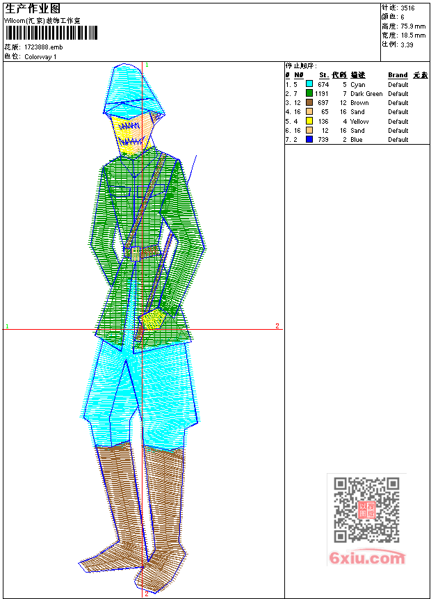 人物 点此上传花版兑乐绣币/现金 emb花版参数: 大小:30.50 KB / 尺寸:18*76[毫米] / 针数:3516针 / 线色:6 / 格式:emb / 版本:6 版带文件需绣花软件方可打开,可配色打印导出各种格式或直接上机绣。如无绣花软件可下载1:1模拟效果图。 PNG图片信息:大小:0.0 (MB) /图宽*高:70x288(像素) 上传作者( wy19*** ) 获得乐绣币:10个 emb下载 1:1图下载 关闭 相似花型推荐: 人物 人物 猫卡通 心形章 货车 花仙女 人物标 棒球标 鹰标 武士 向日葵 蛇 椰树月亮 校车 线条花 上一个花样:人物 下一个花样:人物