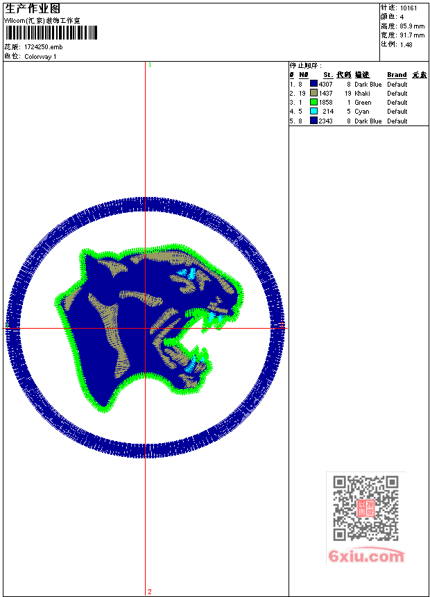 豹头标 点此上传花版兑乐绣币/现金 emb花版参数: 大小:47.50 KB / 尺寸:92*86[毫米] / 针数:10160针 / 线色:4 / 格式:emb / 版本:6 版带文件需绣花软件方可打开,可配色打印导出各种格式或直接上机绣。如无绣花软件可下载1:1模拟效果图。 PNG图片信息:大小:0.1 (MB) /图宽*高:347x325(像素) 上传作者( wy19*** ) 获得乐绣币:10个 emb下载 1:1图下载 关闭 相似花型推荐: 死神人物 狼标wolf pack 飞机 鹰标 推土机汽车 鸟头 鹰标怪鸟 鹰标 鹰标 衣绳绣 胸花衣领 花中老年 裙摆 熊毛巾绣 龙 上一个花样:菠萝 下一个花样:死神人物