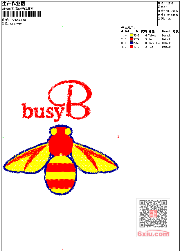 蜜蜂 点此上传花版兑乐绣币/现金 emb花版参数: 大小:47.50 KB / 尺寸:104*103[毫米] / 针数:12638针 / 线色:3 / 格式:emb / 版本:6 版带文件需绣花软件方可打开,可配色打印导出各种格式或直接上机绣。如无绣花软件可下载1:1模拟效果图。 PNG图片信息:大小:0.1 (MB) /图宽*高:396x389(像素) 上传作者( wy19*** ) 获得乐绣币:10个 emb下载 1:1图下载 关闭 相似花型推荐: 狗 狮标 章仔 盾牌 轮船 狗狗 米其林michelin 海星水母动物 海鱼水母动物 眼镜蛇 菠萝 豹头标 死神人物 狼标wolf pack 飞机 上一个花样:章仔 下一个花样:狗