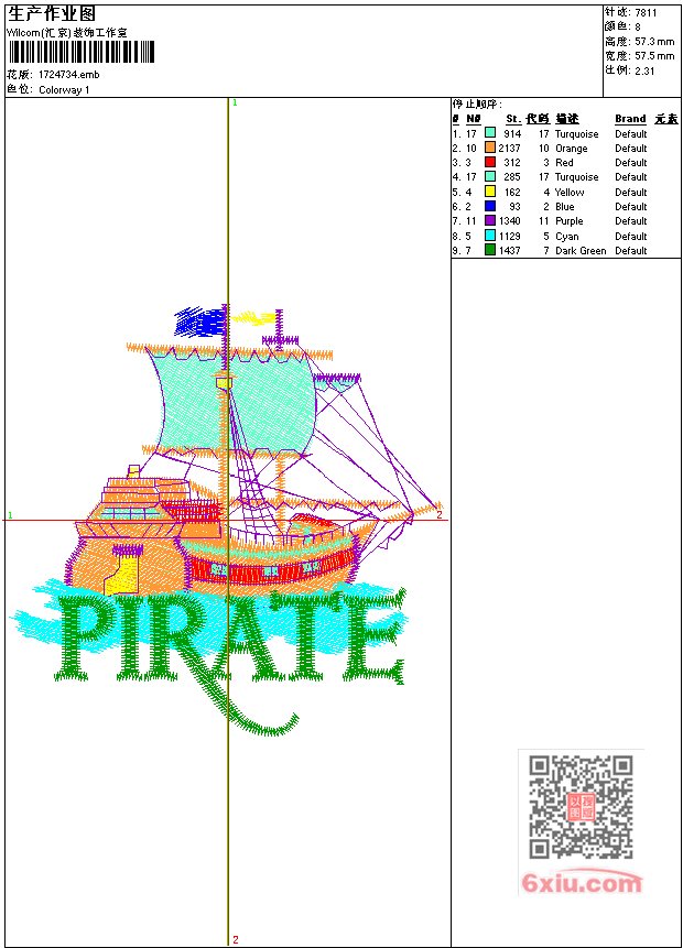 pirate海盗 点此上传花版兑乐绣币/现金 emb花版参数: 大小:55.50 KB / 尺寸:58*57[毫米] / 针数:7814针 / 线色:8 / 格式:emb / 版本:6 版带文件需绣花软件方可打开,可配色打印导出各种格式或直接上机绣。如无绣花软件可下载1:1模拟效果图。 PNG图片信息:大小:0.1 (MB) /图宽*高:218x217(像素) 上传作者( wy19*** ) 获得乐绣币:10个 emb下载 1:1图下载 关闭 相似花型推荐: 骷髅 字母A nissan 抽象龙 轮船 螃蟹 鹰标 卡车 鹰标 火鸡 国旗狮标 马头 警徽 警徽 牡丹毛巾绣 上一个花样:鸟标 下一个花样:骷髅