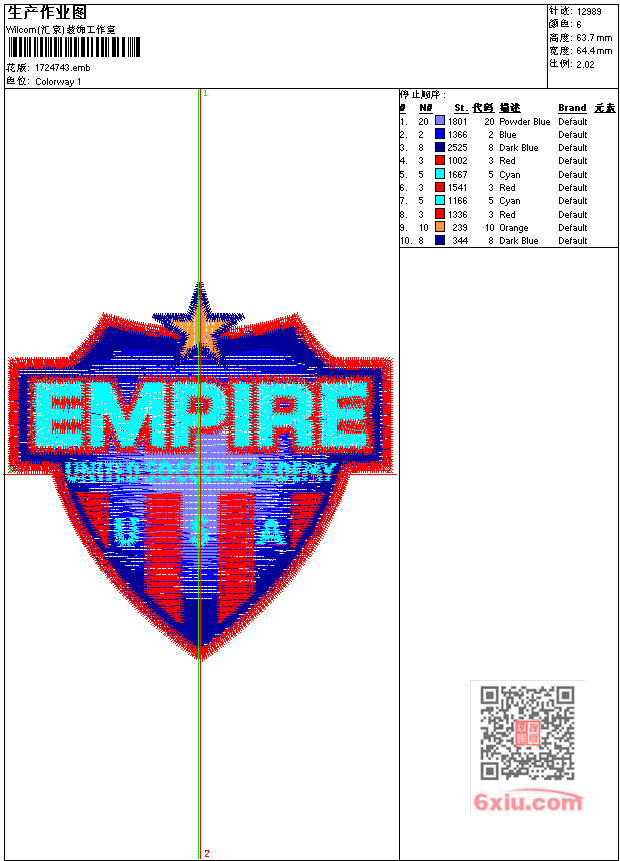 empire章盾 点此上传花版兑乐绣币/现金 emb花版参数: 大小:63.50 KB / 尺寸:64*64[毫米] / 针数:12989针 / 线色:6 / 格式:emb / 版本:6 版带文件需绣花软件方可打开,可配色打印导出各种格式或直接上机绣。如无绣花软件可下载1:1模拟效果图。 PNG图片信息:大小:0.1 (MB) /图宽*高:244x242(像素) 上传作者( wy19*** ) 获得乐绣币:10个 emb下载 1:1图下载 关闭 相似花型推荐: POLO 字母I 钟塔 牦牛 冲浪 冲浪 鳄鱼 鸟标 pirate海盗 骷髅 字母A nissan 抽象龙 轮船 螃蟹 上一个花样:豹标 下一个花样:POLO