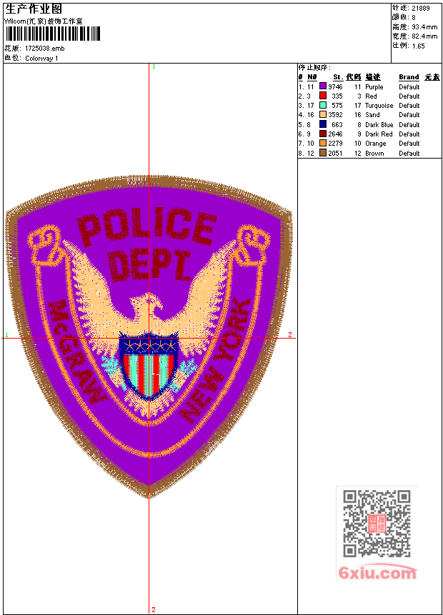 鹰标eagles 点此上传花版兑乐绣币/现金 emb花版参数: 大小:93.00 KB / 尺寸:82*93[毫米] / 针数:21889针 / 线色:8 / 格式:emb / 版本:6 版带文件需绣花软件方可打开,可配色打印导出各种格式或直接上机绣。如无绣花软件可下载1:1模拟效果图。 PNG图片信息:大小:0.2 (MB) /图宽*高:312x354(像素) 上传作者( wy19*** ) 获得乐绣币:10个 emb下载 1:1图下载 关闭 相似花型推荐: 鹰标eagles 美人鱼章 鸟标 豹头 徽章 狗狗 警章 曲线 狼标 河马标 蜘蛛 企鹅 毛衣水溶花 龙凤呈祥工艺精品 鲤鱼工艺精品 上一个花样:猫卡通 下一个花样:鹰标eagles