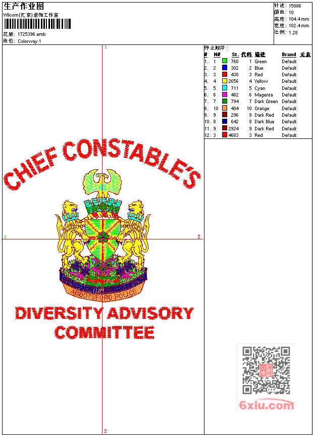 狮标 点此上传花版兑乐绣币/现金 emb花版参数: 大小:64.00 KB / 尺寸:102*104[毫米] / 针数:15085针 / 线色:10 / 格式:emb / 版本:6 版带文件需绣花软件方可打开,可配色打印导出各种格式或直接上机绣。如无绣花软件可下载1:1模拟效果图。 PNG图片信息:大小:0.1 (MB) /图宽*高:388x396(像素) 上传作者( wy19*** ) 获得乐绣币:10个 emb下载 1:1图下载 关闭 相似花型推荐: 武士 骑马章 足球章 手枪 卡车 老鼠 字母标 golf高尔夫 字母action 灯塔 鲨鱼标 鸟章 法院章仔 狐狸 芦苇深处-鹤-鸟-工艺精品 上一个花样:鹰 下一个花样:武士