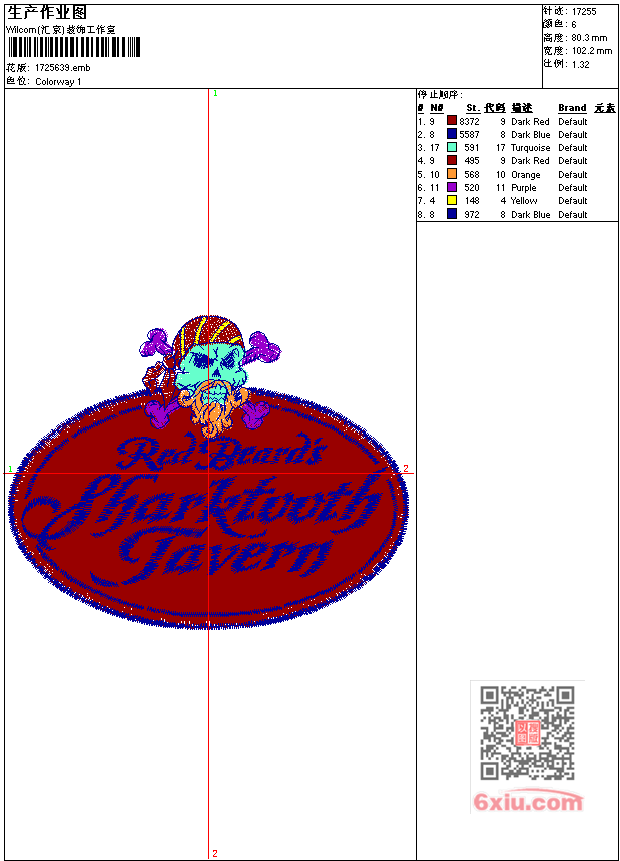 海盗标 点此上传花版兑乐绣币/现金 emb花版参数: 大小:74.50 KB / 尺寸:102*80[毫米] / 针数:17255针 / 线色:6 / 格式:emb / 版本:6 版带文件需绣花软件方可打开,可配色打印导出各种格式或直接上机绣。如无绣花软件可下载1:1模拟效果图。 PNG图片信息:大小:0.2 (MB) /图宽*高:387x304(像素) 上传作者( wy19*** ) 获得乐绣币:10个 emb下载 1:1图下载 关闭 相似花型推荐: 飞机章 火球 枫叶 盾牌章 马章mustang 女孩头像 蜜蜂标 汽车 荷花工艺精品 凤凰工艺精品 恭贺新禧-喜鹊工艺精品 赤壁怀古字画诗-工艺精品 雕孔上衣条码摆 凤凰 凤凰 上一个花样:火鸡鸟 下一个花样:飞机章