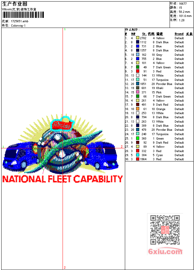 卡车标 点此上传花版兑乐绣币/现金 emb花版参数: 大小:106.00 KB / 尺寸:102*58[毫米] / 针数:16677针 / 线色:15 / 格式:emb / 版本:6 版带文件需绣花软件方可打开,可配色打印导出各种格式或直接上机绣。如无绣花软件可下载1:1模拟效果图。 PNG图片信息:大小:0.1 (MB) /图宽*高:385x221(像素) 上传作者( wy19*** ) 获得乐绣币:10个 emb下载 1:1图下载 关闭 相似花型推荐: 骷髅标 童男孩 鹰翅膀章 手枪章 山姆大叔章 鹰标 手枪 马horse 火鸡鸟 海盗标 飞机章 火球 枫叶 盾牌章 马章mustang 上一个花样:鹰章 下一个花样:骷髅标