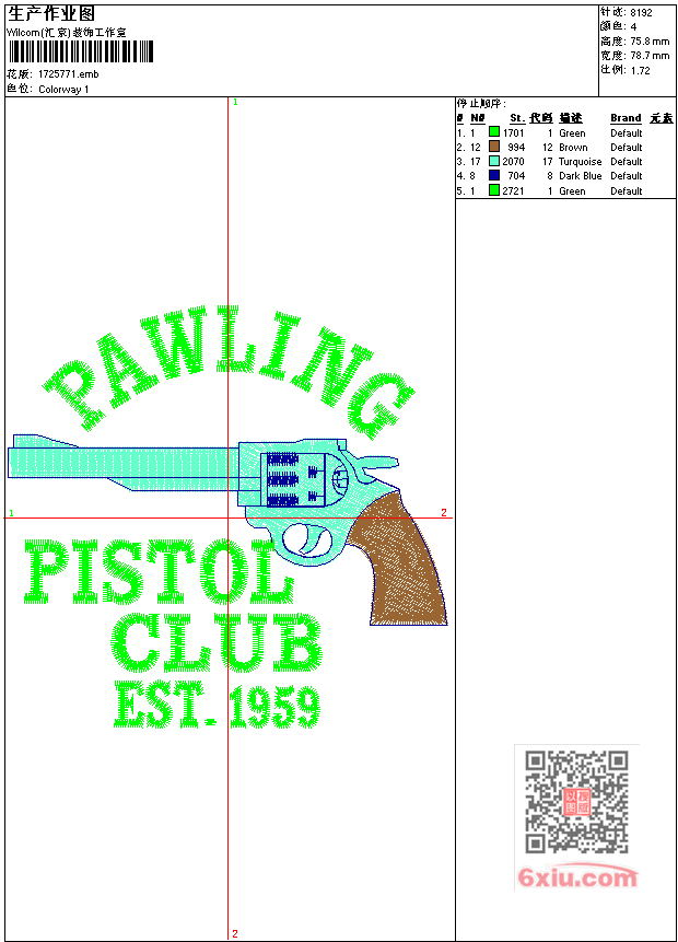 手枪 点此上传花版兑乐绣币/现金 emb花版参数: 大小:49.50 KB / 尺寸:79*76[毫米] / 针数:8194针 / 线色:4 / 格式:emb / 版本:6 版带文件需绣花软件方可打开,可配色打印导出各种格式或直接上机绣。如无绣花软件可下载1:1模拟效果图。 PNG图片信息:大小:0.1 (MB) /图宽*高:298x287(像素) 上传作者( wy19*** ) 获得乐绣币:10个 emb下载 1:1图下载 关闭 相似花型推荐: 鱼 牛仔马 马 高尔夫golf 外国警徽章 家和万事兴十字绣工艺精品 花鸟蝴蝶 工艺精品 坐莲观音工艺精品 龙工艺精品 竹林猛虎工艺精品 竹报平安-鸟字画-工艺精品 夏日如碧-山水画-工艺精品 皇冠章 鹰章 卡车标 上一个花样:鳄鱼 下一个花样:鱼