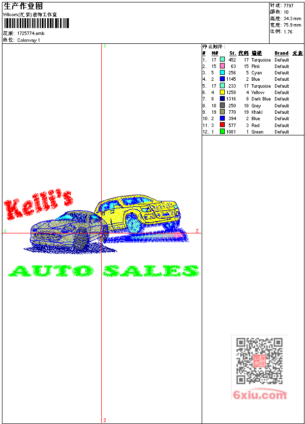 汽车 点此上传花版兑乐绣币/现金 emb花版参数: 大小:69.00 KB / 尺寸:76*34[毫米] / 针数:7797针 / 线色:10 / 格式:emb / 版本:6 版带文件需绣花软件方可打开,可配色打印导出各种格式或直接上机绣。如无绣花软件可下载1:1模拟效果图。 PNG图片信息:大小:0.1 (MB) /图宽*高:287x130(像素) 上传作者( wy19*** ) 获得乐绣币:10个 emb下载 1:1图下载 关闭 相似花型推荐: 人物章仔 鳄鱼 手枪 鱼 牛仔马 马 高尔夫golf 外国警徽章 家和万事兴十字绣工艺精品 花鸟蝴蝶 工艺精品 坐莲观音工艺精品 龙工艺精品 竹林猛虎工艺精品 竹报平安-鸟字画-工艺精品 夏日如碧-山水画-工艺精品 上一个花样:盾牌章 下一个花样:人物章仔