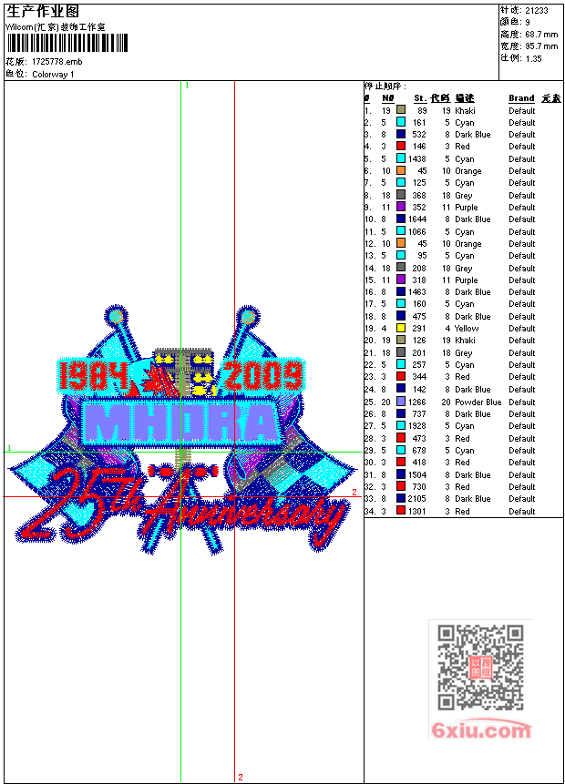 赛旗 点此上传花版兑乐绣币/现金 emb花版参数: 大小:138.00 KB / 尺寸:96*69[毫米] / 针数:21233针 / 线色:9 / 格式:emb / 版本:6 版带文件需绣花软件方可打开,可配色打印导出各种格式或直接上机绣。如无绣花软件可下载1:1模拟效果图。 PNG图片信息:大小:0.1 (MB) /图宽*高:363x260(像素) 上传作者( wy19*** ) 获得乐绣币:10个 emb下载 1:1图下载 关闭 相似花型推荐: 蘑菇章 盾牌章 汽车 人物章仔 鳄鱼 手枪 鱼 牛仔马 马 高尔夫golf 外国警徽章 家和万事兴十字绣工艺精品 花鸟蝴蝶 工艺精品 坐莲观音工艺精品 龙工艺精品 上一个花样:豹头 下一个花样:蘑菇章