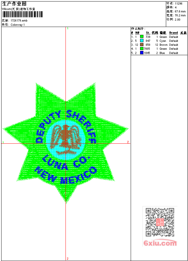 六星章 点此上传花版兑乐绣币/现金 emb花版参数: 大小:64.50 KB / 尺寸:70*68[毫米] / 针数:11296针 / 线色:4 / 格式:emb / 版本:6 版带文件需绣花软件方可打开,可配色打印导出各种格式或直接上机绣。如无绣花软件可下载1:1模拟效果图。 PNG图片信息:大小:0.1 (MB) /图宽*高:266x256(像素) 上传作者( wy19*** ) 获得乐绣币:10个 emb下载 1:1图下载 关闭 相似花型推荐: 骑马武士 豹头 国旗 棒球章 龙 龙 京剧脸谱 米老鼠5mm珠片 pp线梅花 时装复杂绣花 抽像曲线时装绣花 盾牌剑 汽车 北极熊bears 船长 上一个花样:鹰头 下一个花样:骑马武士