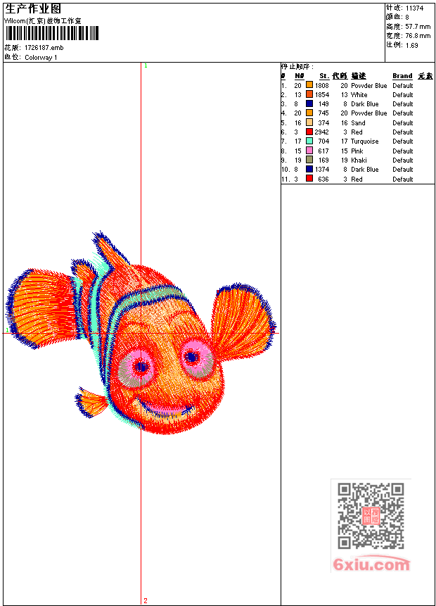 尼莫鱼卡通 点此上传花版兑乐绣币/现金 emb花版参数: 大小:75.50 KB / 尺寸:77*58[毫米] / 针数:11374针 / 线色:8 / 格式:emb / 版本:6 版带文件需绣花软件方可打开,可配色打印导出各种格式或直接上机绣。如无绣花软件可下载1:1模拟效果图。 PNG图片信息:大小:0.1 (MB) /图宽*高:291x219(像素) 上传作者( wy19*** ) 获得乐绣币:10个 emb下载 1:1图下载 关闭 相似花型推荐: 汽车 老人头标 五角星 五角星 章仔 赛旗racing 鹰头 六星章 骑马武士 豹头 国旗 棒球章 龙 龙 京剧脸谱 上一个花样:恐龙卡通 下一个花样:汽车