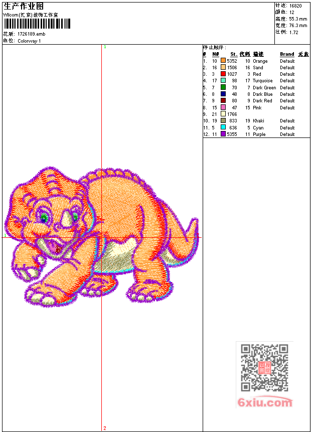 恐龙卡通 点此上传花版兑乐绣币/现金 emb花版参数: 大小:114.50 KB / 尺寸:76*55[毫米] / 针数:16820针 / 线色:12 / 格式:emb / 版本:6 版带文件需绣花软件方可打开,可配色打印导出各种格式或直接上机绣。如无绣花软件可下载1:1模拟效果图。 PNG图片信息:大小:0.1 (MB) /图宽*高:289x209(像素) 上传作者( wy19*** ) 获得乐绣币:10个 emb下载 1:1图下载 关闭 相似花型推荐: 恐龙卡通 尼莫鱼卡通 汽车 老人头标 五角星 五角星 章仔 赛旗racing 鹰头 六星章 骑马武士 豹头 国旗 棒球章 龙 上一个花样:枫叶 下一个花样:恐龙卡通