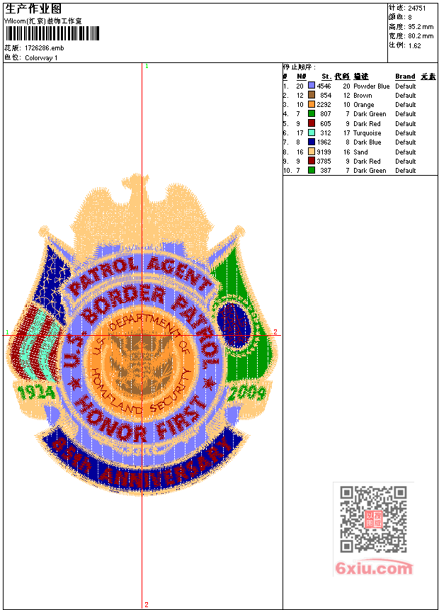 鹰章 点此上传花版兑乐绣币/现金 emb花版参数: 大小:126.00 KB / 尺寸:80*95[毫米] / 针数:24751针 / 线色:8 / 格式:emb / 版本:6 版带文件需绣花软件方可打开,可配色打印导出各种格式或直接上机绣。如无绣花软件可下载1:1模拟效果图。 PNG图片信息:大小:0.2 (MB) /图宽*高:304x361(像素) 上传作者( wy19*** ) 获得乐绣币:10个 emb下载 1:1图下载 关闭 相似花型推荐: 盾牌剑章 城堡 鹰标 桃花 参花牡丹 凤凰 凤凰工艺精品 凤凰站枝头工艺精品 骷髅武士标 熊 狗 足球火 枫叶 恐龙卡通 恐龙卡通 上一个花样:武士帽 下一个花样:盾牌剑章