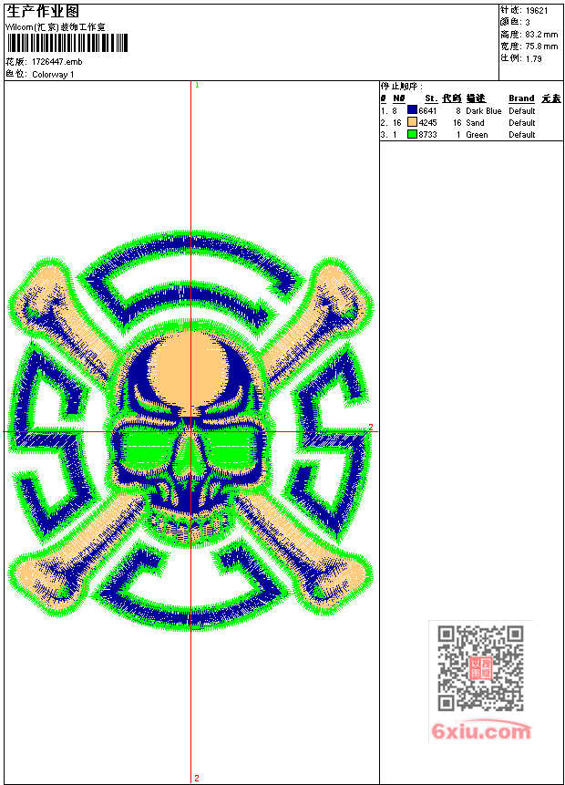 骷髅标 点此上传花版兑乐绣币/现金 emb花版参数: 大小:101.50 KB / 尺寸:76*83[毫米] / 针数:19621针 / 线色:3 / 格式:emb / 版本:6 版带文件需绣花软件方可打开,可配色打印导出各种格式或直接上机绣。如无绣花软件可下载1:1模拟效果图。 PNG图片信息:大小:0.2 (MB) /图宽*高:287x315(像素) 上传作者( wy19*** ) 获得乐绣币:10个 emb下载 1:1图下载 关闭 相似花型推荐: 狗章 臂章 胸标 章标字母 足球标 狐狸fox 武士剑盾牌 海边美女T恤 凤凰工艺精品 龙工艺精品 龙工艺精品 马 老虎卡通 松鼠标 球队标 上一个花样:章标 下一个花样:狗章
