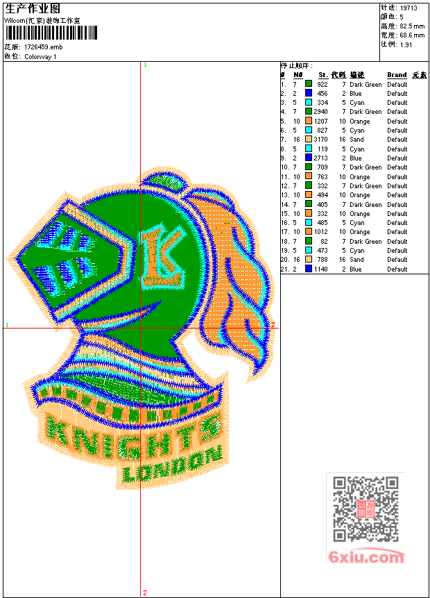 武士头 点此上传花版兑乐绣币/现金 emb花版参数: 大小:104.50 KB / 尺寸:69*82[毫米] / 针数:19713针 / 线色:5 / 格式:emb / 版本:6 版带文件需绣花软件方可打开,可配色打印导出各种格式或直接上机绣。如无绣花软件可下载1:1模拟效果图。 PNG图片信息:大小:0.1 (MB) /图宽*高:260x313(像素) 上传作者( wy19*** ) 获得乐绣币:10个 emb下载 1:1图下载 关闭 相似花型推荐: 球队标 武士头 骷髅赛手 骷髅赛手 武士头 足球 男孩卡通 豹 章标 骷髅标 狗章 臂章 胸标 章标字母 足球标 上一个花样:猴子摘桃 下一个花样:球队标