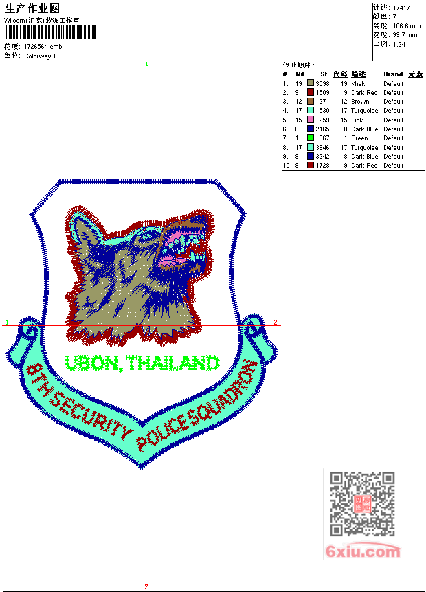 狼标 点此上传花版兑乐绣币/现金 emb花版参数: 大小:94.50 KB / 尺寸:100*107[毫米] / 针数:17417针 / 线色:7 / 格式:emb / 版本:6 版带文件需绣花软件方可打开,可配色打印导出各种格式或直接上机绣。如无绣花软件可下载1:1模拟效果图。 PNG图片信息:大小:0.2 (MB) /图宽*高:378x404(像素) 上传作者( wy19*** ) 获得乐绣币:10个 emb下载 1:1图下载 关闭 相似花型推荐: 考拉动物 马标 狗章 卡车 鸟标 鹰臂章 虾卡通 皇冠马车警察章 豹 豹头字母 武士knights章 马 外国警察章标 翅膀章标 猫头-手袋,服装 上一个花样:狗狗吃鱼精品 下一个花样:考拉动物