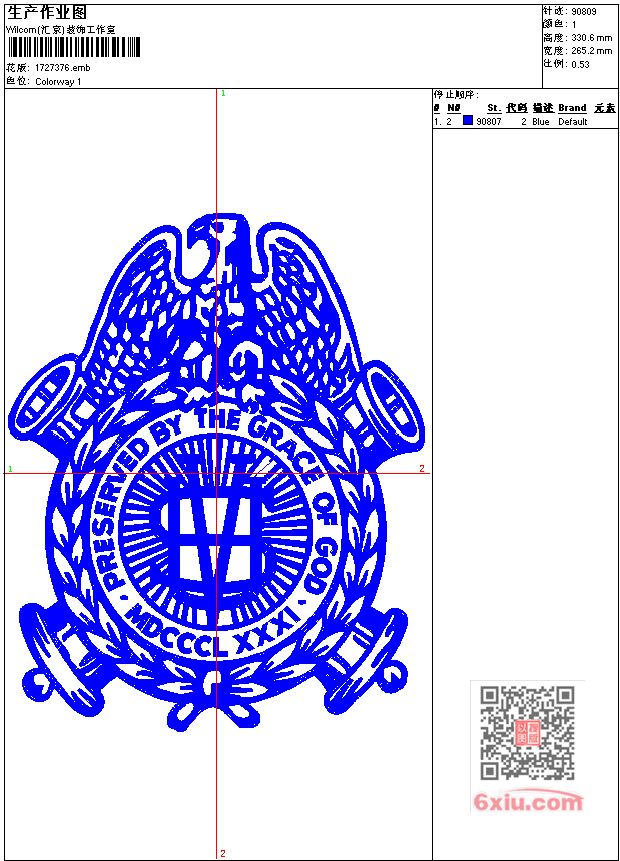 鹰标 点此上传花版兑乐绣币/现金 emb花版参数: 大小:317.50 KB / 尺寸:265*331[毫米] / 针数:90809针 / 线色:1 / 格式:emb / 版本:6 版带文件需绣花软件方可打开,可配色打印导出各种格式或直接上机绣。如无绣花软件可下载1:1模拟效果图。 PNG图片信息:大小:1.3 (MB) /图宽*高:1004x1251(像素) 上传作者( wy19*** ) 获得乐绣币:10个 emb下载 1:1图下载 关闭 相似花型推荐: 羊 狮标盾牌 马 豹 龙-喷火龙 毛巾绣-光头强-人物-熊出没 装饰花样-工艺镜画 鸟-凤凰 鸟-梅花 马-毛巾绣 鹦鹉-鸟 猫头 虎-吉祥-中国风 凤凰 鸟-花朵 上一个花样:麒麟 龙 中国风 吉祥 下一个花样:羊