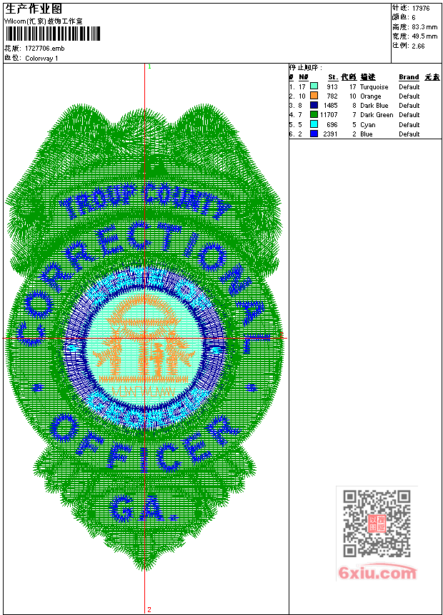 外国警察徽章 点此上传花版兑乐绣币/现金 emb花版参数: 大小:102.50 KB / 尺寸:50*83[毫米] / 针数:17975针 / 线色:6 / 格式:emb / 版本:6 版带文件需绣花软件方可打开,可配色打印导出各种格式或直接上机绣。如无绣花软件可下载1:1模拟效果图。 PNG图片信息:大小:0.1 (MB) /图宽*高:188x316(像素) 上传作者( wy19*** ) 获得乐绣币:10个 emb下载 1:1图下载 关闭 相似花型推荐: 豹头 章仔 凤凰 米奇-米老鼠 鸟 狗金毛 鸟鹦鹉 卡通人物工艺精品 凤工艺精品 紫气东来工艺精品 竹子工艺精品 木屋 国旗 盾牌剑 牛 上一个花样:武士帽 下一个花样:豹头