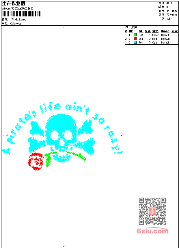 骷髅玫瑰 点此上传花版兑乐绣币/现金 emb花版参数: 大小:39.00 KB / 尺寸:77*44[毫米] / 针数:4210针 / 线色:3 / 格式:emb / 版本:6 版带文件需绣花软件方可打开,可配色打印导出各种格式或直接上机绣。如无绣花软件可下载1:1模拟效果图。 PNG图片信息:大小:0.0 (MB) /图宽*高:292x167(像素) 上传作者( cylc*** ) 获得乐绣币:10个 emb下载 1:1图下载 关闭 相似花型推荐: 北极熊 骷髅 机器人 齐天大圣-猴子 十字绣玫瑰花 豹子头 领民族古典 领-盘带 牡丹花传统 手-佛 龙 凤凰鸟 龙 比利保罗骑士polo 小马 上一个花样:克莱斯勒车标 下一个花样:北极熊