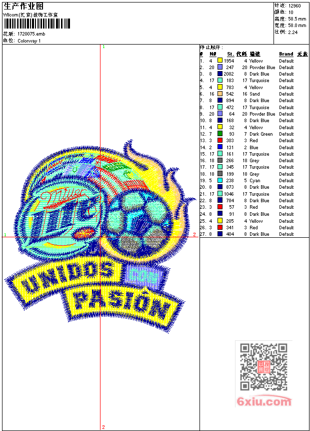 足球章仔 点此上传花版兑乐绣币/现金 emb花版参数: 大小:96.00 KB / 尺寸:58*58[毫米] / 针数:12960针 / 线色:10 / 格式:emb / 版本:6 版带文件需绣花软件方可打开,可配色打印导出各种格式或直接上机绣。如无绣花软件可下载1:1模拟效果图。 PNG图片信息:大小:0.1 (MB) /图宽*高:220x222(像素) 上传作者( cylc*** ) 获得乐绣币:10个 emb下载 1:1图下载 关闭 相似花型推荐: 恐龙卡通 湖边夕阳 鹰章仔 飞虎队 球队标 球队标 extreme 湖边风景 骷髅 骷髅标 蜥蜴卡通 王冠贴标 subaru车标 Bosch标 鲨鱼卡通 上一个花样:canadlan 下一个花样:恐龙卡通