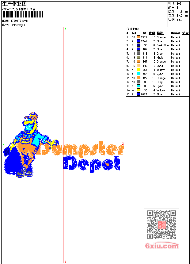 人物卡通 点此上传花版兑乐绣币/现金 emb花版参数: 大小:70.50 KB / 尺寸:89*48[毫米] / 针数:8023针 / 线色:8 / 格式:emb / 版本:6 版带文件需绣花软件方可打开,可配色打印导出各种格式或直接上机绣。如无绣花软件可下载1:1模拟效果图。 PNG图片信息:大小:0.1 (MB) /图宽*高:337x182(像素) 上传作者( cylc*** ) 获得乐绣币:10个 emb下载 1:1图下载 关闭 相似花型推荐: 满绣上衣花 复杂装饰条几何 链目绣-上衣 凤舞吉祥-牡丹花 yokohama 国旗章仔 水鸭鸟 足球章仔 鹤鸟 方程式赛车 球队标 球队标 canadlan 足球章仔 恐龙卡通 上一个花样:球标 下一个花样:满绣上衣花