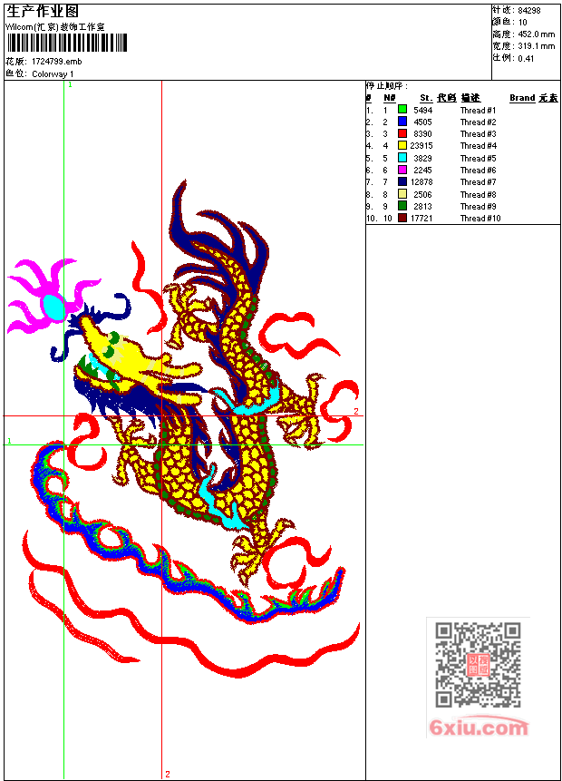 龙 点此上传花版兑乐绣币/现金 emb花版参数: 大小:338.50 KB / 尺寸:319*452[毫米] / 针数:84298针 / 线色:10 / 格式:emb / 版本:7 版带文件需绣花软件方可打开,可配色打印导出各种格式或直接上机绣。如无绣花软件可下载1:1模拟效果图。 PNG图片信息:大小:1.7 (MB) /图宽*高:1207x1710(像素) 上传作者( *** ) 获得乐绣币:1个 emb下载 1:1图下载 关闭 相似花型推荐: 牛魔王卡通 道可道精品 鹰 简单曲线 牛头 牛头 blize火焰 马 警徽police 大众车 印度人 鲨鱼 野猪 野猪 牛仔 上一个花样:衣服后背贴/装饰条纹 下一个花样:牛魔王卡通
