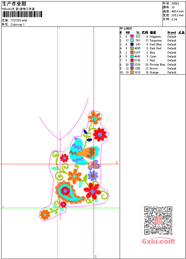 胸前花抽象 点此上传花版兑乐绣币/现金 emb花版参数: 大小:136.00 KB / 尺寸:228*401[毫米] / 针数:28583针 / 线色:10 / 格式:emb / 版本:e2 版带文件需绣花软件方可打开,可配色打印导出各种格式或直接上机绣。如无绣花软件可下载1:1模拟效果图。 PNG图片信息:大小:0.3 (MB) /图宽*高:864x1516(像素) 上传作者( *** ) 获得乐绣币:20个 emb下载 1:1图下载 关闭 相似花型推荐: 豹标 熊标 美女抽象 夕阳鹿风景 橄榄球手 快男 狗狗标 龙戏珠 猫头 毛巾绣 亮片猫 烫花 烫花 花-简单 花简单-毛巾绣 上一个花样:龙 下一个花样:豹标