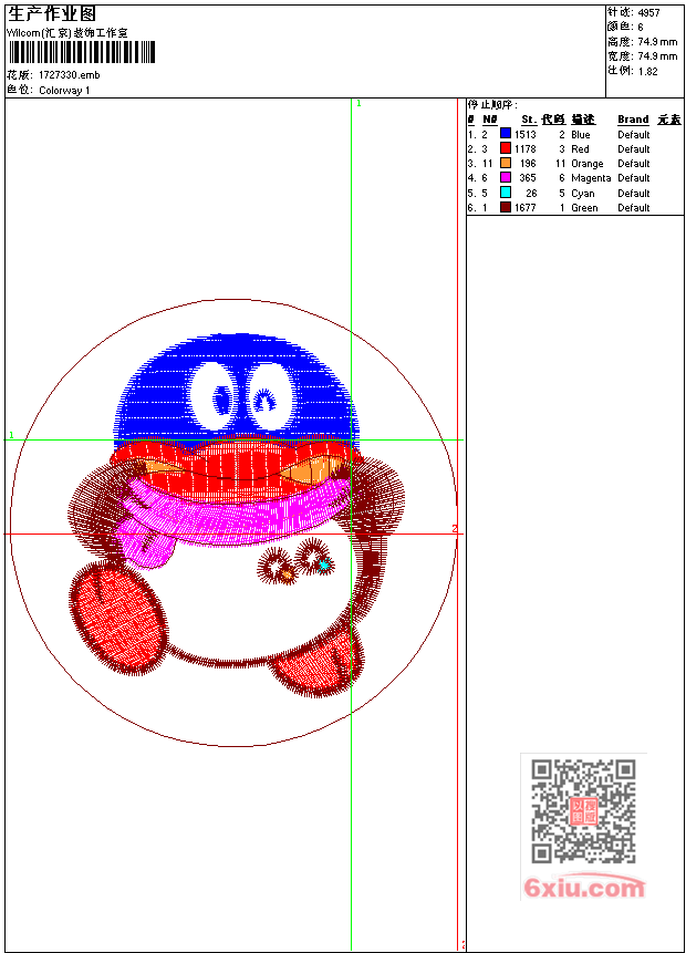 QQ头像 点此上传花版兑乐绣币/现金 emb花版参数: 大小:40.50 KB / 尺寸:75*75[毫米] / 针数:4957针 / 线色:6 / 格式:emb / 版本:7 版带文件需绣花软件方可打开,可配色打印导出各种格式或直接上机绣。如无绣花软件可下载1:1模拟效果图。 PNG图片信息:大小:0.1 (MB) /图宽*高:284x284(像素) 上传作者( *** ) 获得乐绣币:10个 emb下载 1:1图下载 关闭 相似花型推荐: 龙 胸前花抽象 豹标 熊标 美女抽象 夕阳鹿风景 橄榄球手 快男 狗狗标 龙戏珠 猫头 毛巾绣 亮片猫 烫花 烫花 上一个花样:鹤-吉祥 下一个花样:龙