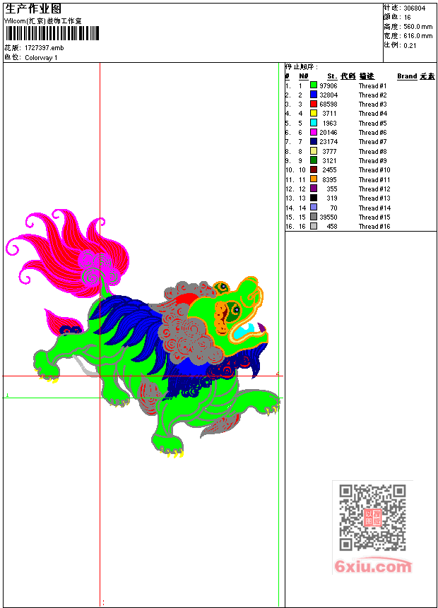 麒麟 龙 中国风 吉祥 点此上传花版兑乐绣币/现金 emb花版参数: 大小:454.00 KB / 尺寸:616*560[毫米] / 针数:306804针 / 线色:16 / 格式:emb / 版本:7 版带文件需绣花软件方可打开,可配色打印导出各种格式或直接上机绣。如无绣花软件可下载1:1模拟效果图。 PNG图片信息:大小:5.1 (MB) /图宽*高:2330x2119(像素) 上传作者( *** ) 获得乐绣币:50个 emb下载 1:1图下载 关闭 相似花型推荐: 鹰标 羊 狮标盾牌 马 豹 龙-喷火龙 毛巾绣-光头强-人物-熊出没 装饰花样-工艺镜画 鸟-凤凰 鸟-梅花 马-毛巾绣 鹦鹉-鸟 猫头 虎-吉祥-中国风 凤凰 上一个花样:龙争虎斗 下一个花样:鹰标