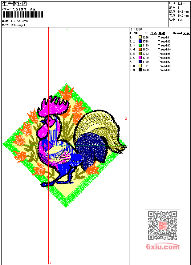 鸡-民族风 点此上传花版兑乐绣币/现金 emb花版参数: 大小:132.50 KB / 尺寸:99*99[毫米] / 针数:22934针 / 线色:9 / 格式:emb / 版本:e2 版带文件需绣花软件方可打开,可配色打印导出各种格式或直接上机绣。如无绣花软件可下载1:1模拟效果图。 PNG图片信息:大小:0.2 (MB) /图宽*高:375x376(像素) 上传作者( *** ) 获得乐绣币:1个 emb下载 1:1图下载 关闭 相似花型推荐: 凤凰双喜 保罗polo骑马 象棋-棋盘-民族风 鸟-麻雀-鸟上树枝-中国风 龙争虎斗 麒麟 龙 中国风 吉祥 鹰标 羊 狮标盾牌 马 豹 龙-喷火龙 毛巾绣-光头强-人物-熊出没 装饰花样-工艺镜画 鸟-凤凰 上一个花样:虎头 下一个花样:凤凰双喜